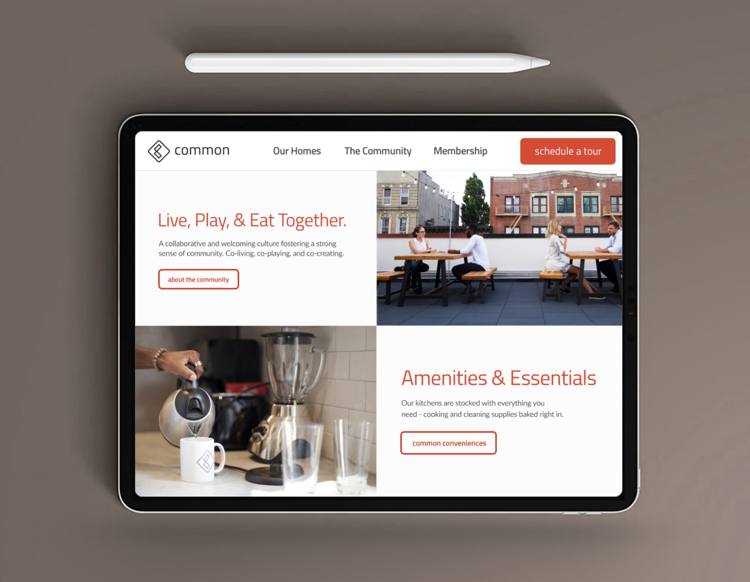 Art Direction & HomePage Design for Common Living’s refreshed website. The goal was to redesign their homepage to attract young adults seeking a home & community in NYC.